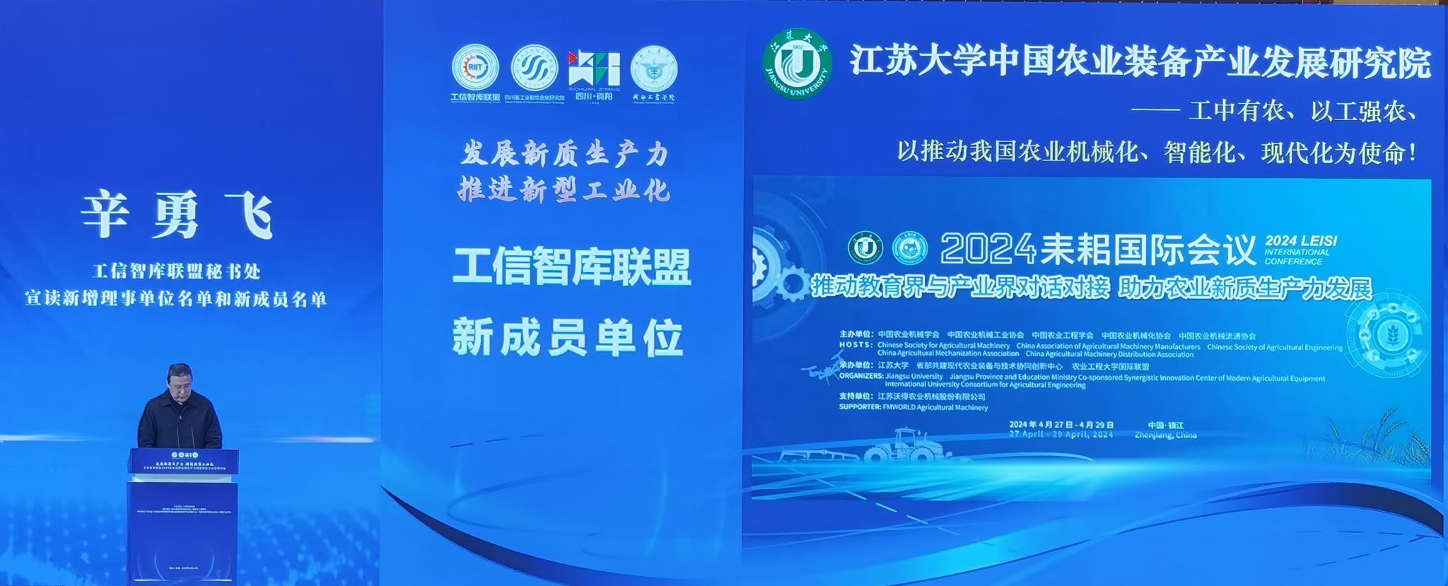 1月11日,国家工信智库联盟2024年年会暨新质生产力赋能新型工业化研讨会在四川资阳举行,会上宣布了新增理事单位、成员单位,我校中国农业装备产业发展研究院入选工信智库联盟成员单位。