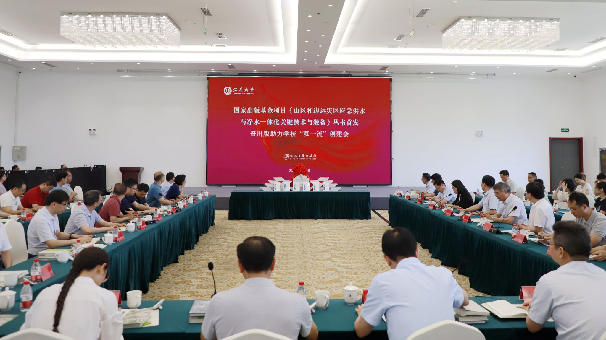 7月2日,国家出版基金项目《山区和边远灾区应急供水与净水一体化关键技术与装备》丛书首发暨出版助力学校“双一流”创建会在青教公寓多功能厅举行。校党委书记李洪波,原党委书记、丛书主编袁寿其,副校长陈红出席会议,相关职能部门、学院负责人及出版团队共70余人参会。会议由陈红主持。
