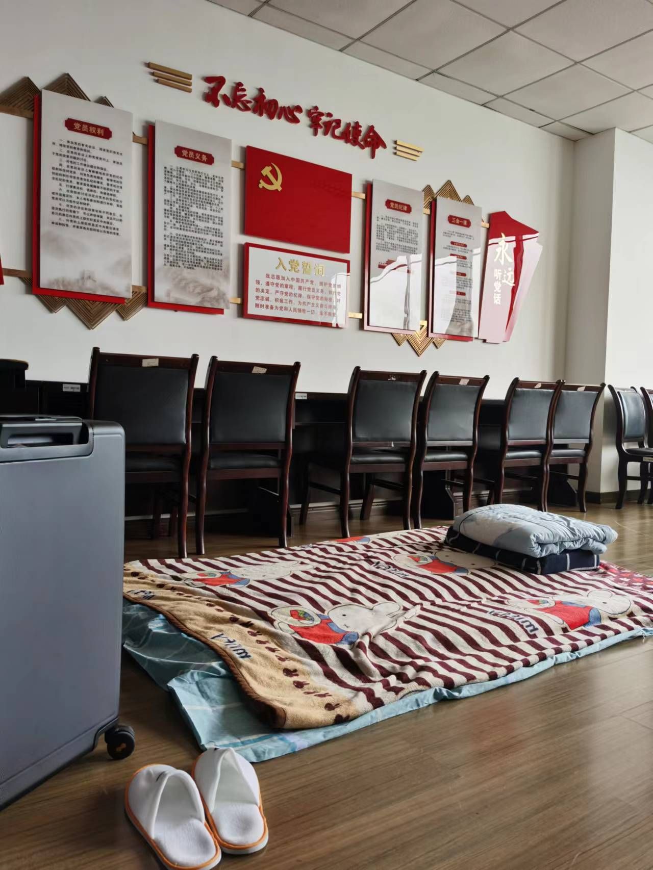 两位新教师王红伟、刘洋报名志愿者,9月28日晚进校,与小组成员黄志伟一起,驻校参加核酸检测信息录入、送餐等工作,学院办公室、会议室成了他们的临时住所。