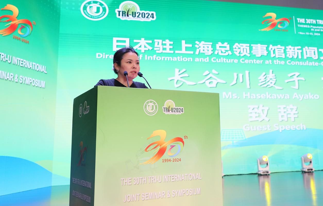 日本驻上海总领事馆新闻文化部部长长谷川绫子在致辞时说,“三国三校”国际学术研讨会为参与的各国人员提供了交流和学习的平台,希望大家充分利用这一宝贵的机会,建立友谊、增进交流、推动发展,取得更多令人难忘的成果。