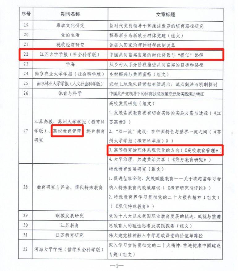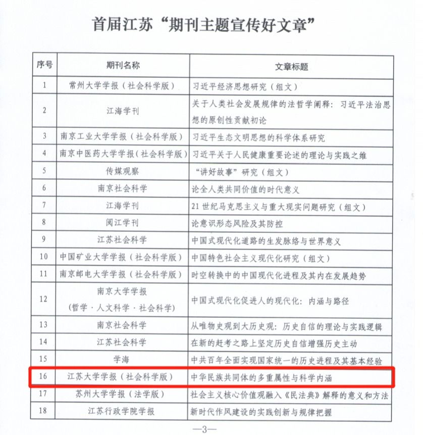 近日,江苏省新闻出版局主办、省期刊协会承办首届江苏“期刊主题宣传好文章”推荐活动,47篇(组)文章入选首届江苏“期刊主题宣传好文章”。其中,《FH网页登录学报(社会科学版)》刊发的《中华民族共同体的多重属性与科学内涵》《中国共同富裕发展的时代背景与“提低”路径》,《高校教育管理》刊发的《高等教育治理体系现代化的方向》等三篇文章成功入选。