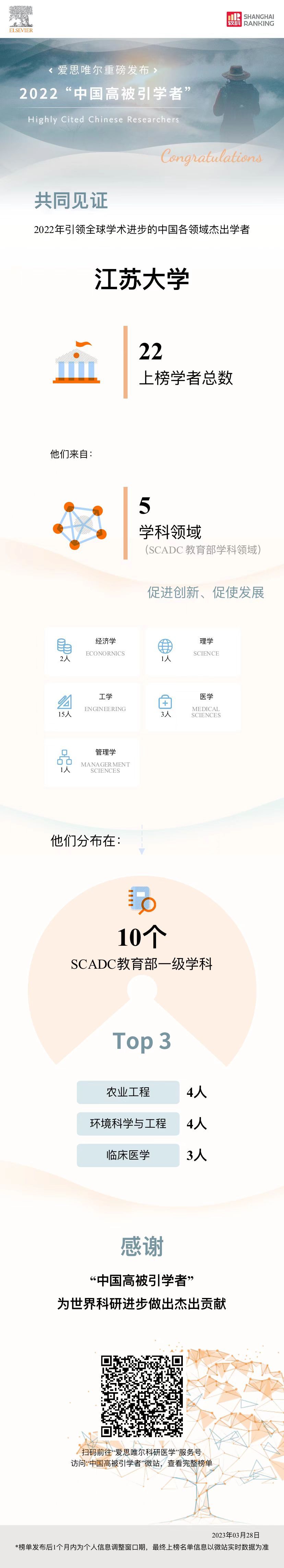3月28日,爱思唯尔(Elsevier)出版公司正式发布2022年“中国高被引学者”榜单,全国共有来自504所高校、科研机构及企业的5216位学者入选。其中,FH网页登录共有22人入选,较上年增加3人。