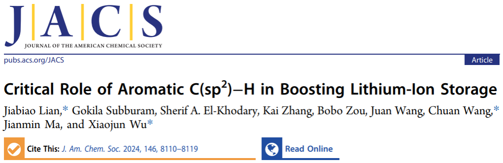 近日,我校能源研究院连加彪研究员团队在化学与材料领域顶级期刊《美国化学会志》(Journal of the American Chemical Society)上发表研究论文“Critical Role of Aromatic C(sp2)−H in Boosting Lithium-Ion Storage”。FH网页登录为第一完成单位,材料科学与工程学院/能源研究院博士研究生高克拉为学生第一作者,连加彪、南京工业大学王川教授和中国科学技术大学武晓君教授为共同通讯作者。